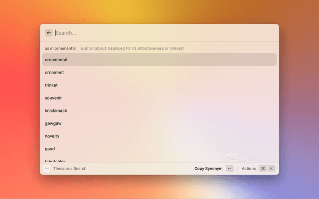 Look up any word on Merriam-Webster's Thesaurus from raycast.