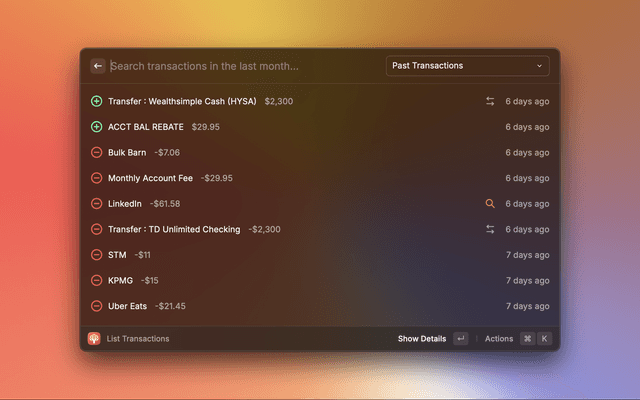 Raynab is an extension allowing YNAB users to manage one or multiple budgets directly from within Raycast. The aim is to reduce friction and allow you to stay on top of your budget at any point in time.