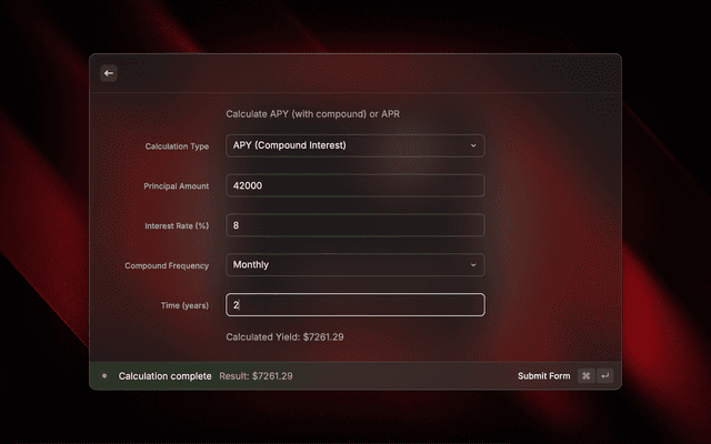Calculte your yield, APY / APR using our calculator.
