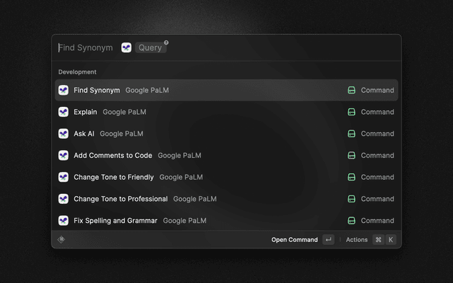 Use the Google PaLM 2 API in Raycast.