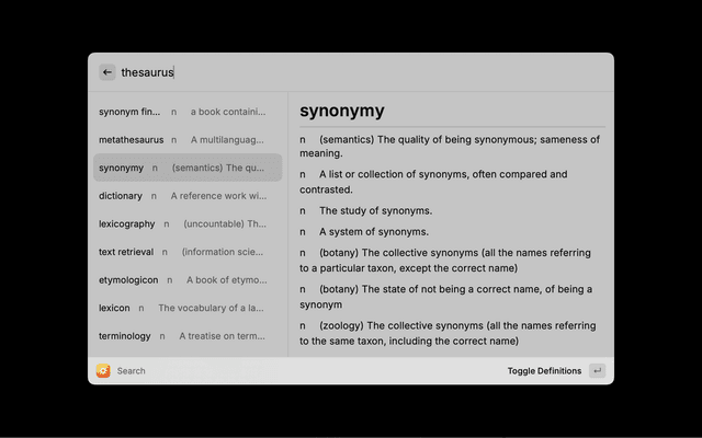 A powerful English thesaurus and brainstorming tool that lets you describe what you're looking for in plain terms.