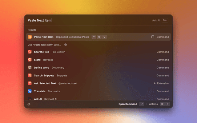 Warning: If you attempt to paste the next item without any input focused (e.g., in a random application), the item will not be pasted, similar to the behavior of the standard paste function. But the extension will still move on to the next item.