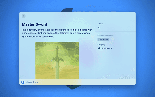 This extension allows you to conveniently search and access information from the BotW Hyrule Compendium.