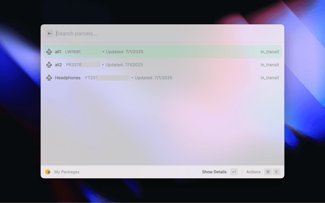 Unofficial Raycast extension for tracking packages and shipments using Ship24's comprehensive tracking service.