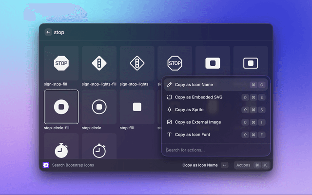 A simple extension for looking up, copying, and using Bootstrap icons through Raycast.