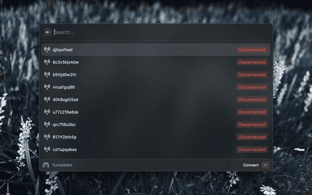Uses Apple Script to fetch configurations (opens Tunnelblick in the background). Available actions: