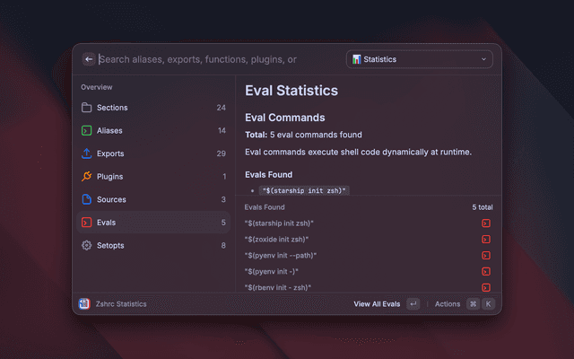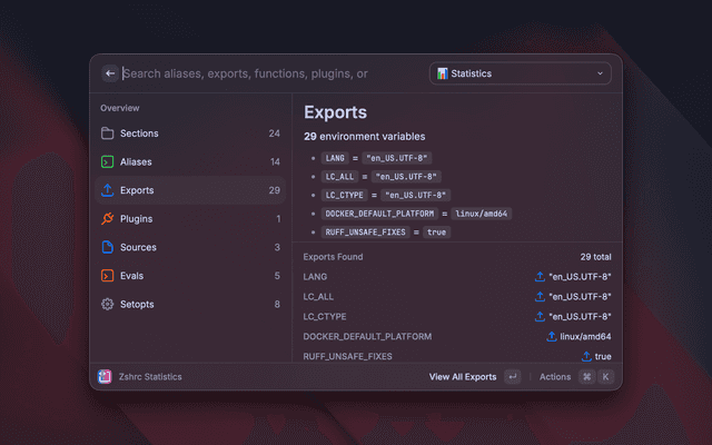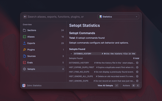 | 📊 Zshrc Statistics | Overview of your entire zshrc configuration | — |