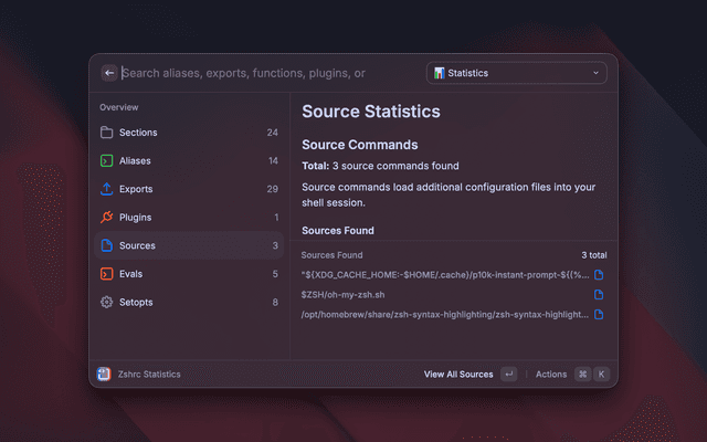 | 📝 | Section Management | View zshrc content organized by logical sections with detailed breakdowns |