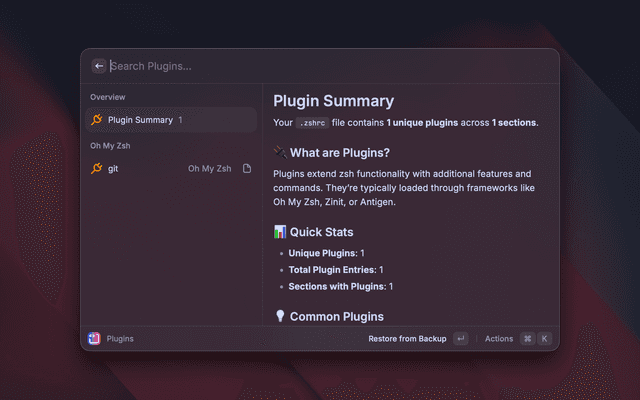 | 💾 Backup Manager | Manage zshrc backups | — |