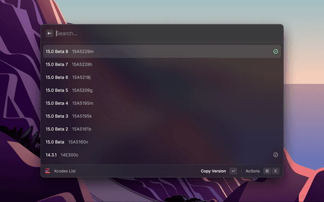 This extension uses XcodesOrg's xcodes CLI to provide a list of available Xcode distribution.