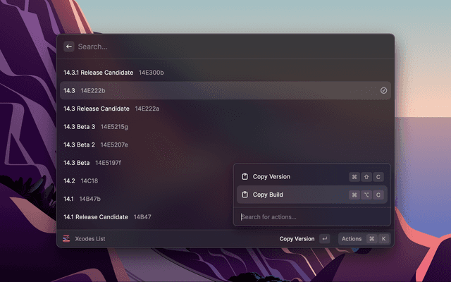 Search and open your recent Xcode Projects, manage your Simulators & Apps, view the latest Releases, create Swift Packages & Playgrounds and quickly clear Xcode cache files.