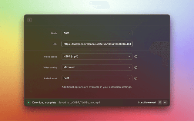 A Raycast extension that allows you to easily download videos & audio from popular social media platforms, powered by cobalt's API. A list of supported services can be found here.