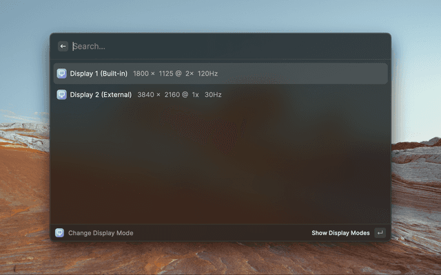 A simple extensions that lists the available displays, the modes for each display and allows to change to the mode with the desired resolution and refresh rate
