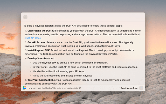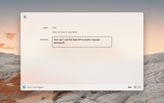 Directly ask something to the Dust, GPT-5 or Claude-4 assistants.