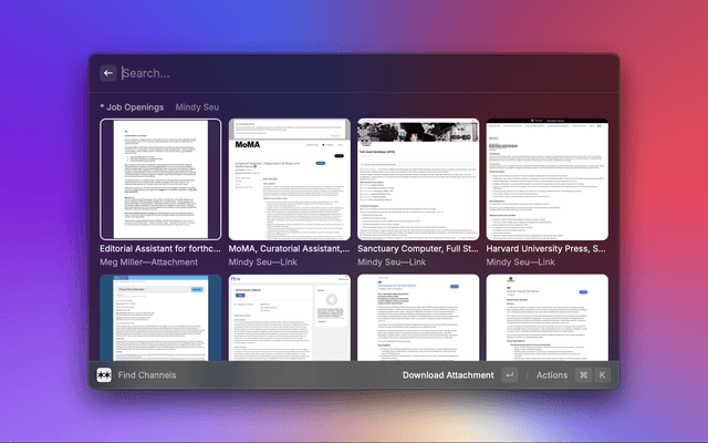 Quickly search for Are.na channels using the Search Are.na Channels command.
