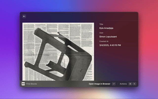 Easily preview text and image blocks straight from the Raycast command bar.