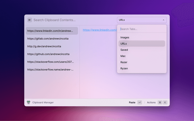Lists CopyQ clipboard entries and allows user to select/paste them.