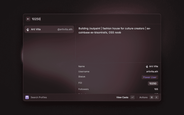 Most comprehensive extension for Farcaster. Search for casts, profiles and more. In order to use this extension, you'll need a Neynar API Key