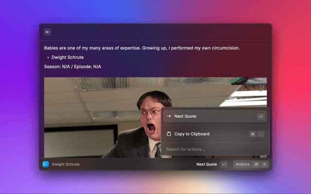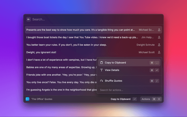 A Raycast extension for viewing, and copying/pasting quotes from 'The Office'.