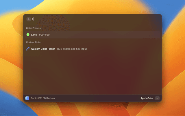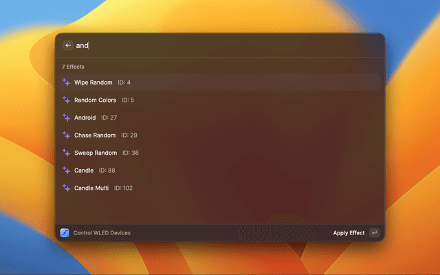 - Open Raycast and search for "Control WLED Devices"