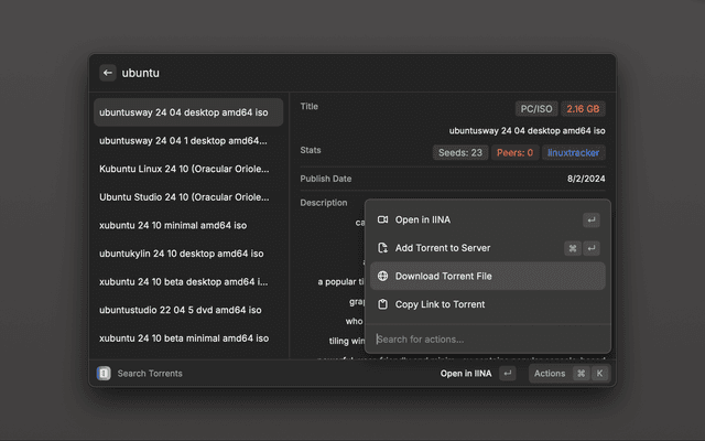 - Search Torrents Across Trackers: Add link to selfhosted Jackett parser to search for torrents across trackers and add them directly to your TorrServer from Raycast.