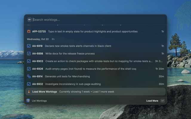 - List Worklogs: View recent work logs grouped by day with total hours