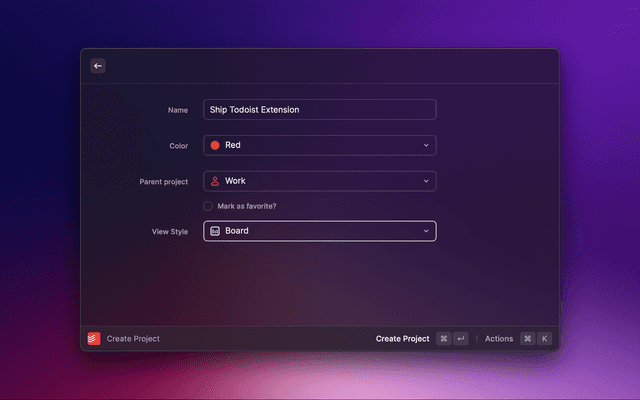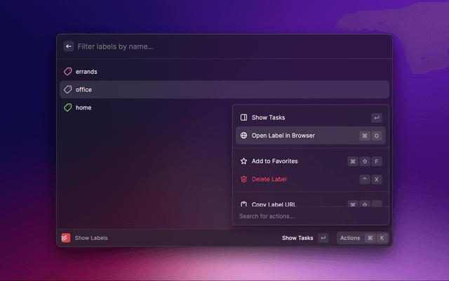 Home command and select your view in the dropdown (e.g All Tasks or a specific project)Create View Quicklink in the actions (⌘ + K).⌘ + ⏎).This makes it easy to access any of your views, including projects and labels!