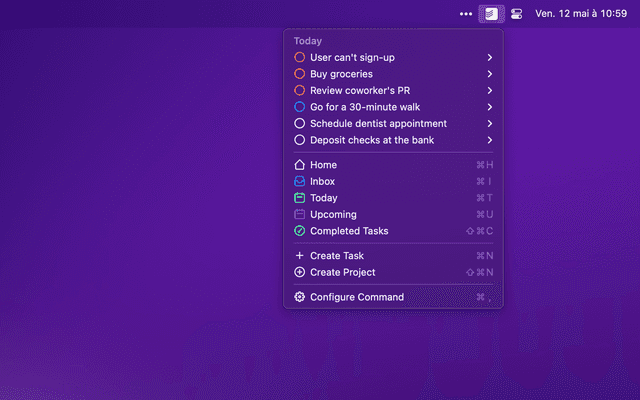 Check your Todoist tasks from within Raycast and quickly create new ones.
