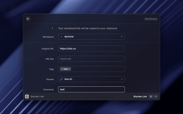 This extension allows you to shorten and retrieve your Dub links directly inside Raycast.