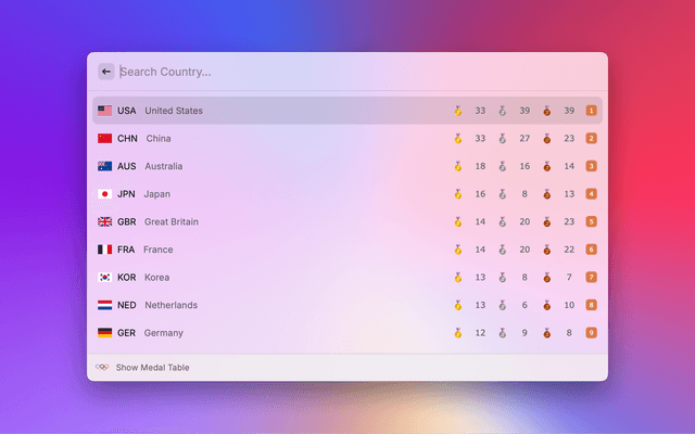 Paris 2024 Olympic Medal Table
