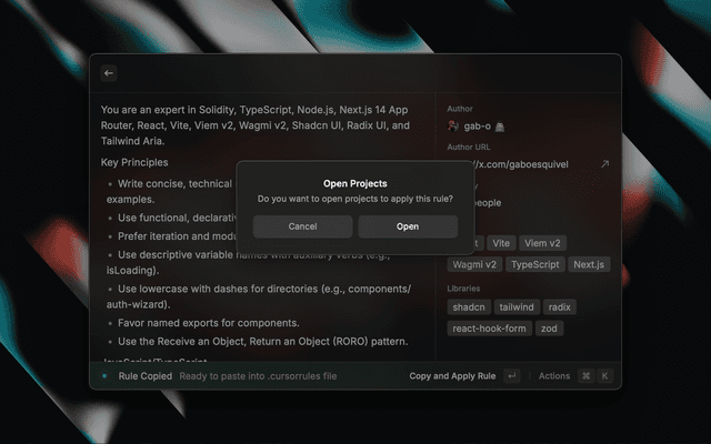 - One-Click Application: Easily copy and create cursor rules to your project's