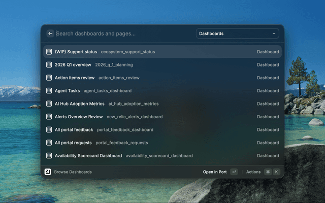 | Browse Dashboards | List and open Port dashboards and catalog pages |