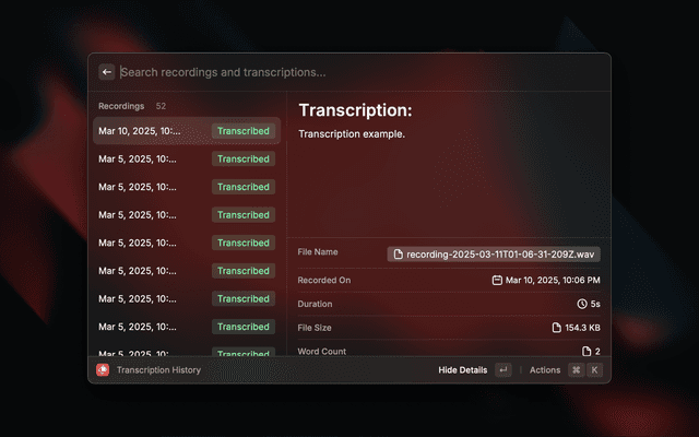 - Filter and search through your transcription history