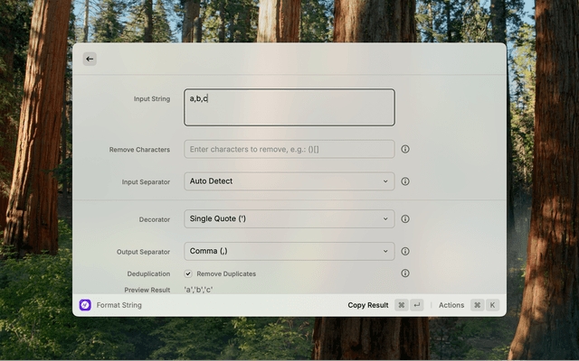 A powerful string formatting Raycast extension with intelligent separator detection, character removal, custom decorators, and output formatting.