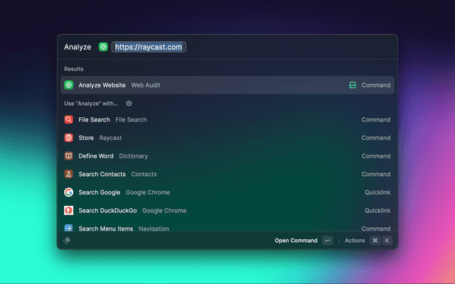 This Raycast Extension lets you audit a given webpage in a matter of seconds. It's made to showcase all critical data and tell you what is not optimized yet.