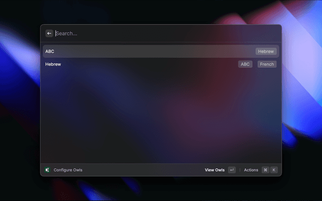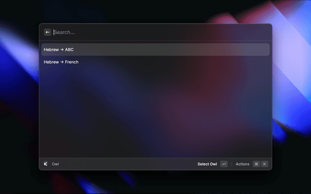 OWL is a powerful Raycast extension that helps you quickly fix mistyped text caused by typing in the wrong keyboard layout. Define your own language-to-language mappings (based on keyboard layouts), and instantly convert any selected text to the correct one using your custom mappings.