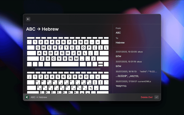 Define as many layout-to-layout conversions as you want. OWL will remember them and let you switch or correct text effortlessly.