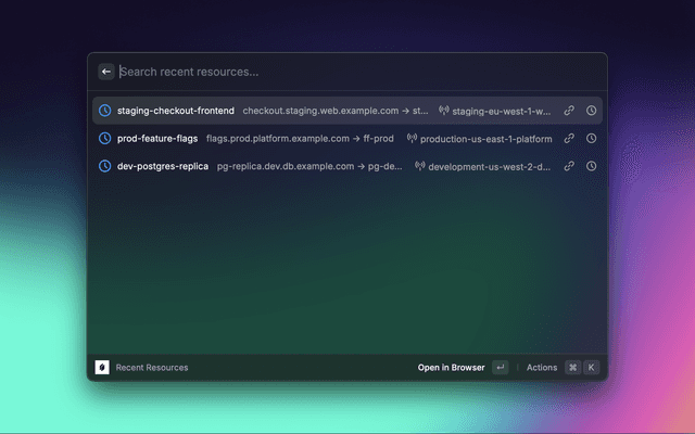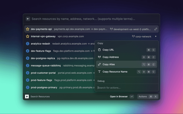 - π Copy Actions: Copy URLs, addresses, aliases, and resource names