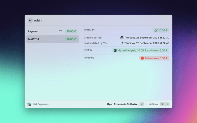 Effortlessly create, search, and modify your expenses with the Raycast extension for Splitwise!