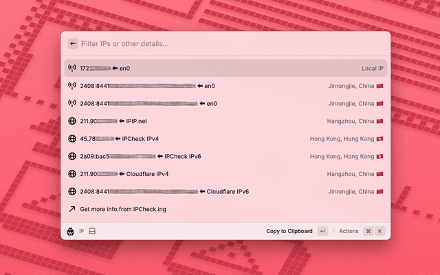 IPCheck is an extention that shows all your IPs, from Local Network and Multiple Sources.