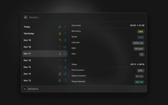 Displays your WHOOP overview.