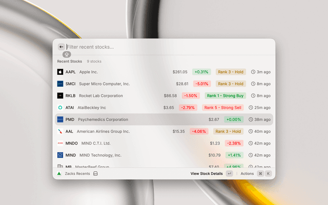 Zacks Recents – See a list of your recent Zacks searches.