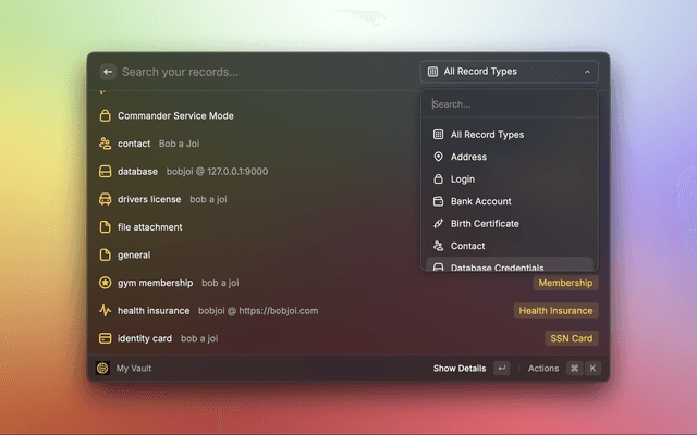 A comprehensive Raycast extension that provides seamless access to your Keeper Security vault directly to your macOS desktop. Manage records, generate secure credentials, and access your vault records without leaving your workflow.