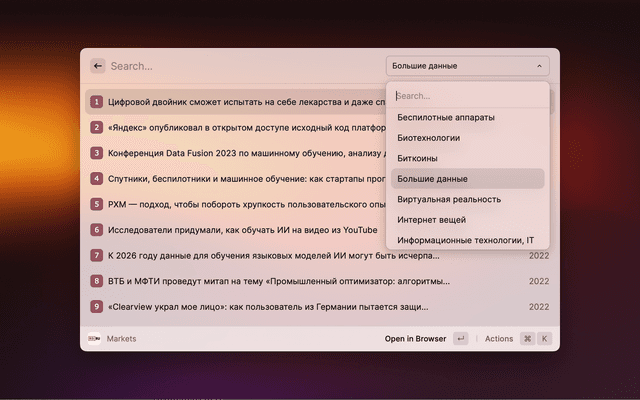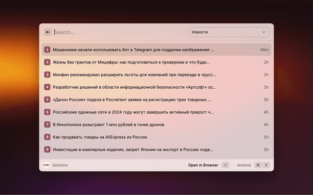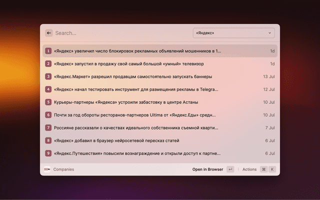 This is a simple extension that allows you to read Rusbase news. It works directly in Raycast, no external applications or dependencies are required