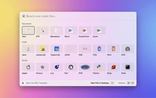 Quickly create file in the open Finder window.