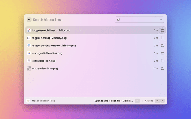 - 🌟🌟🌟But you can always use the shortcut " ⇧+⌘+. " or Raycast build-in Toggle Hidden Files command to see all system hidden files.