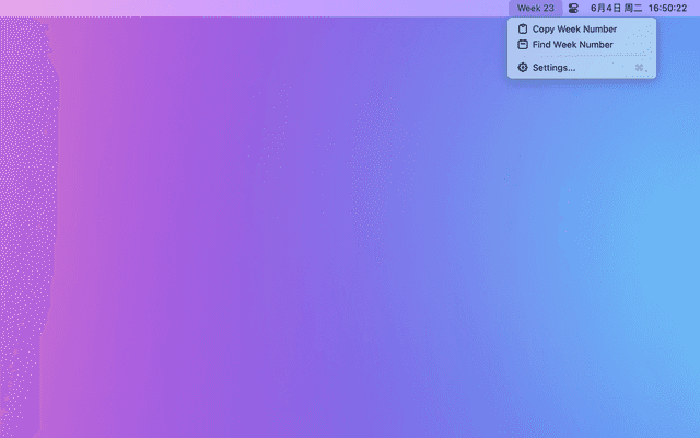 The current week number in your menu bar.