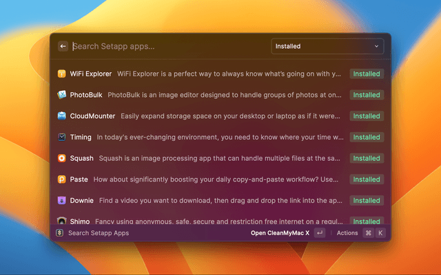 If you don't have Setapp installed it will only search Setapp online catalog of apps. If you have Setapp installed it will allow you to launch apps.