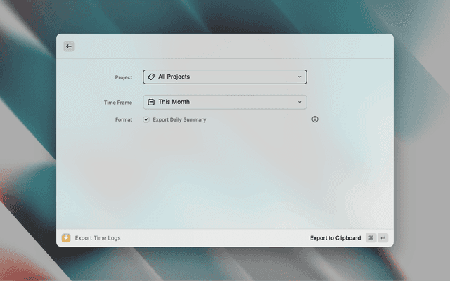 Track, manage, and export time logs on tasks and projects with this simple and powerful Raycast extension.