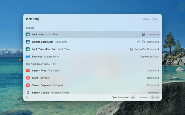 - Menu Bar — Real-time lock time displayed in your menu bar with time range info